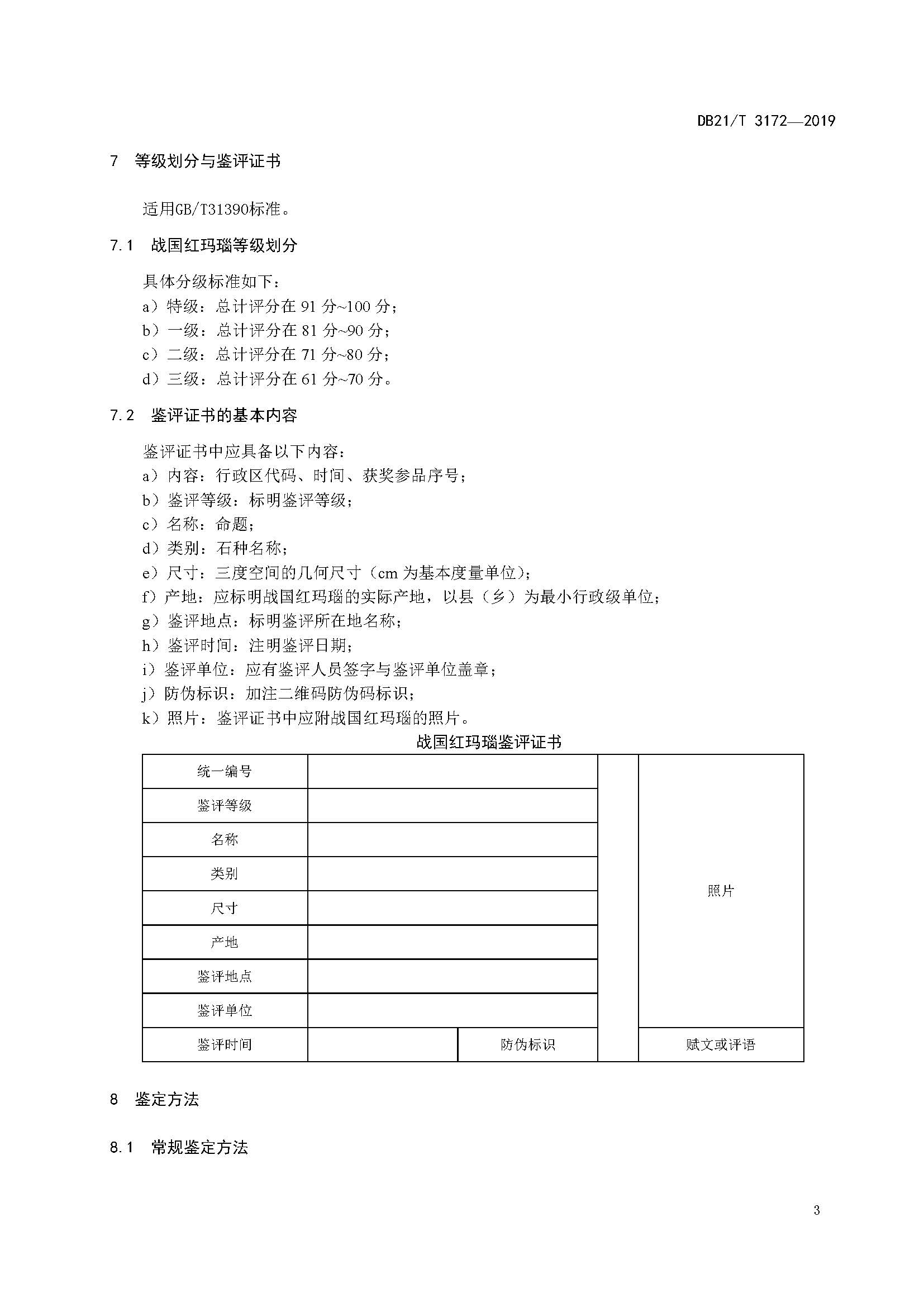 DB21/T 3172-2019 战国红玛瑙 鉴评鉴定
